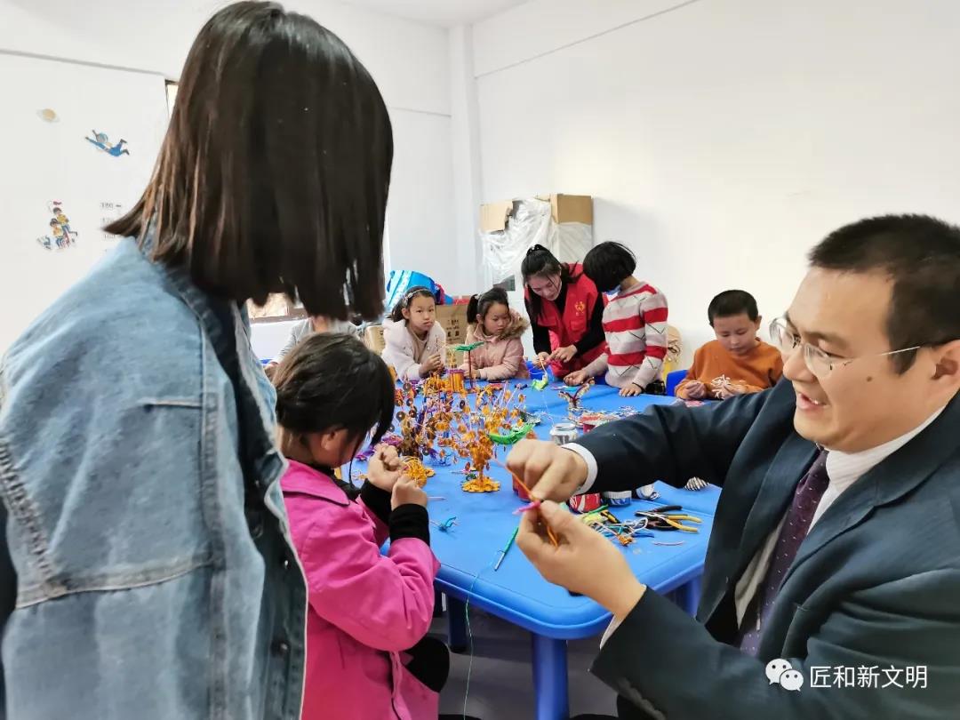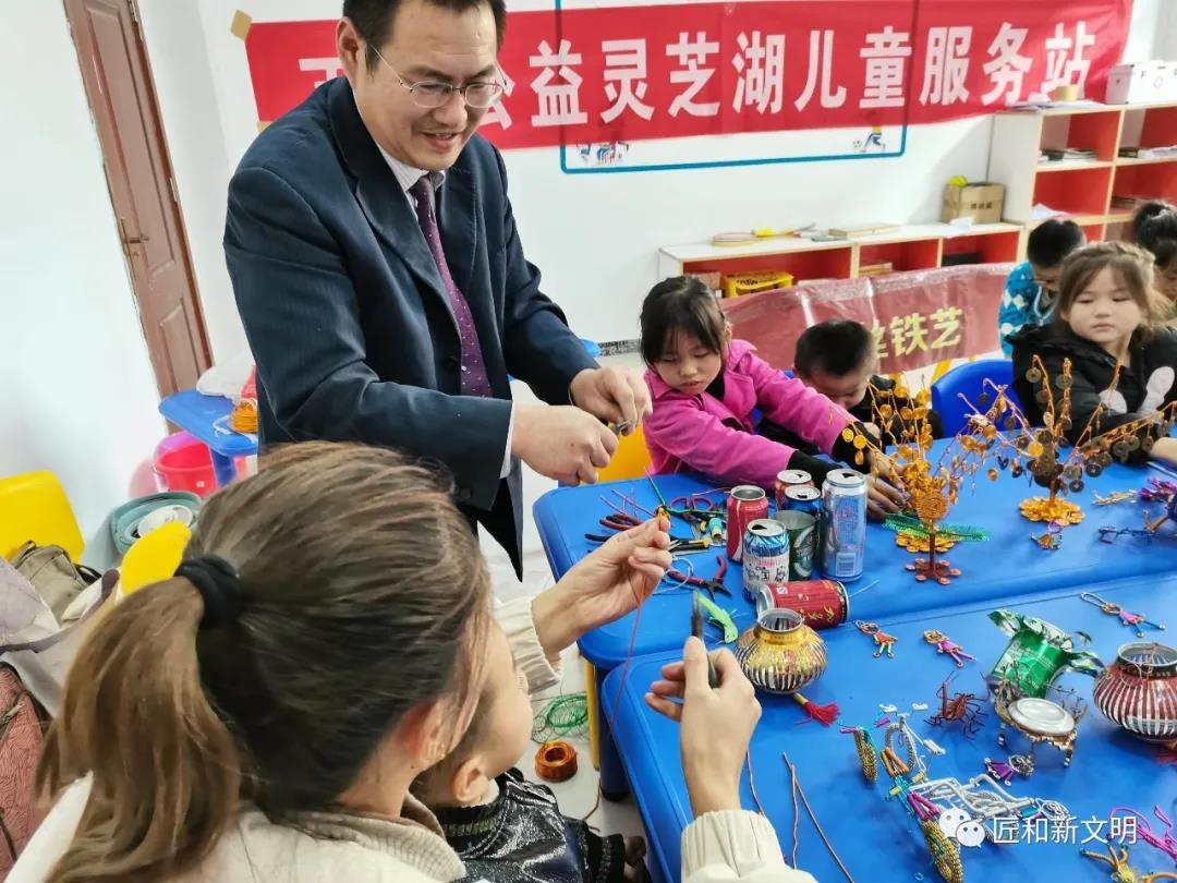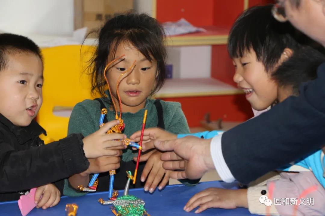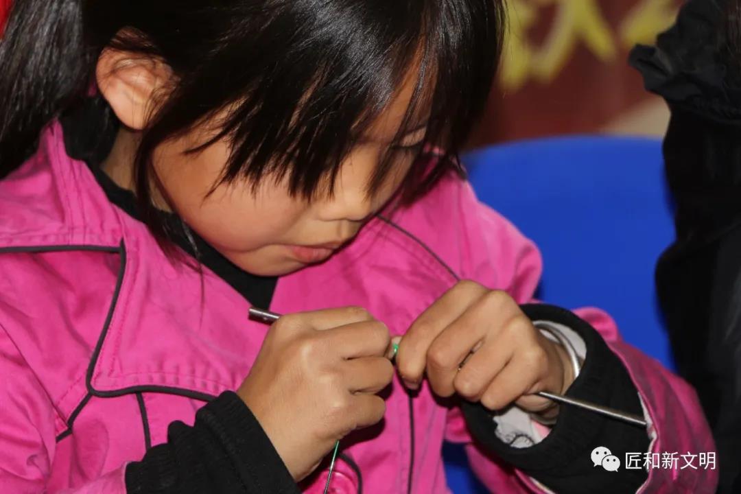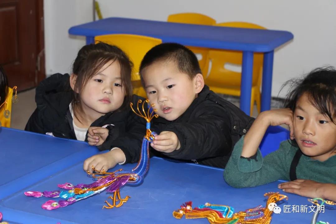 2020年11月7日,山亭区百元公益灵芝湖壹基金儿童服务站开展了“我是小小非遗传承人”活动。 儿童服务站邀请山亭区民间艺人彩丝铁艺张老师, 孩子们看到彩丝作品,又惊讶又惊喜, 非常喜爱,看着栩栩如生的彩丝编织的小动物, 还有编织的孩子们喜欢的卡通人物,都迫不及待的跃跃欲试亲手做一件。