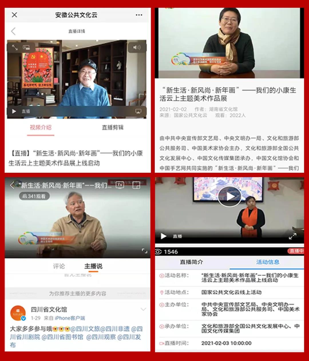 由中共中央宣传部文艺局、中央文明办一局、文化和旅游部公共服务司、中国美术家协会主办,文化和旅游部全国公共文化发展中心、中国文化传媒集团承办,中国文化馆协会、中国手艺网具体实施的“新生活·新风尚·新年画”——我们的小康生活主题美术创作征集展示活动(简称“征集展示活动”)云上展览部分,于2021年2月3日在国家公共文化云平台上拉开帷幕。