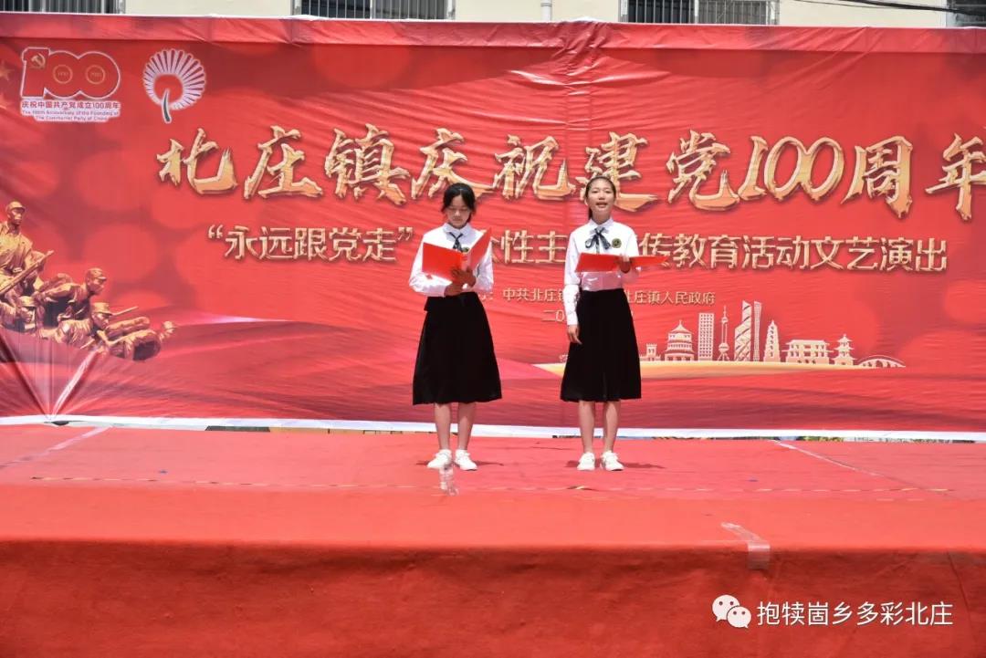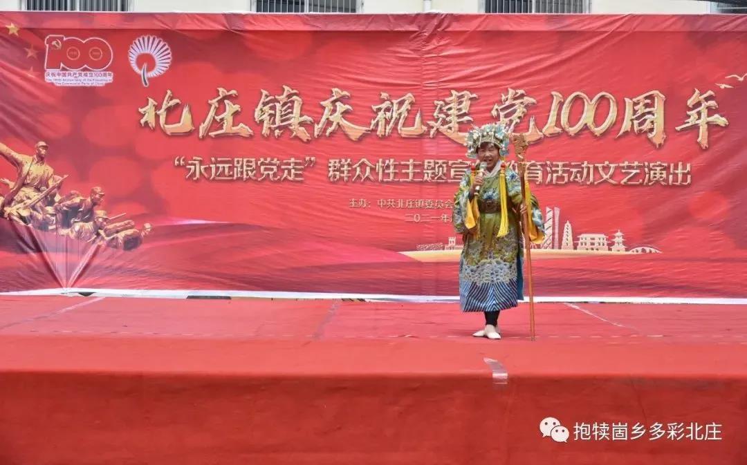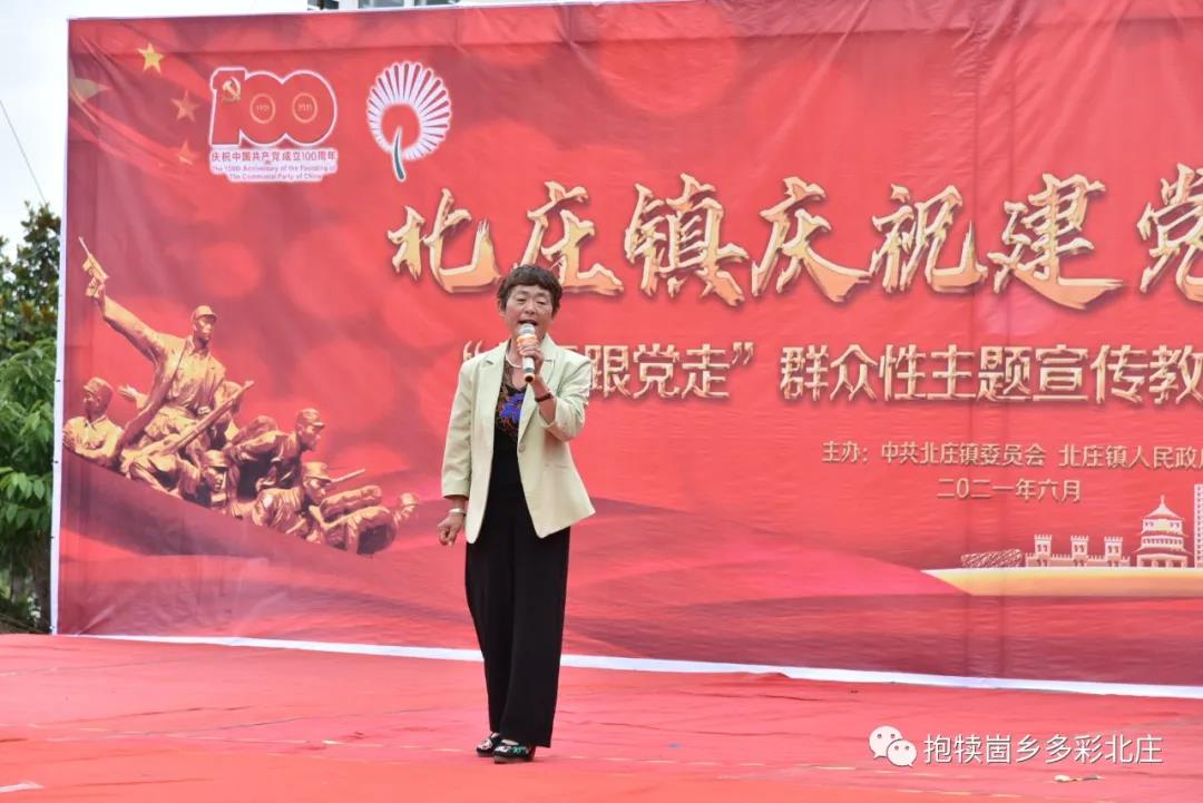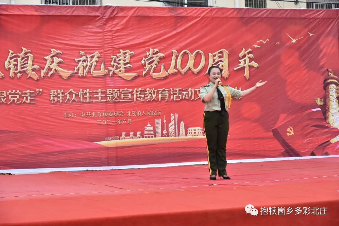 北庄镇军艺舞苑《节庆欢歌》 北庄镇机关《我们走在大路上》 高庄村《活力中国》 北庄镇中心幼儿园《没有共产党就没有新中国》 山东省曲艺家协会会员、枣庄市曲艺家协会副主席、山亭区曲艺家协会主席、山东快书非遗传承人赵明《歌颂建党100周年》 下十河庄户剧团吴秀秀《和谐中国》 北庄村《没有共产党就没有新中国》 北庄镇中心小学《红星歌》 半湖村刘兆侠《劝罗成》 北庄镇半湖小学侯婷婷《英雄赞歌》 北庄镇军艺舞苑《羽翼》 北庄镇东庄小学《红歌联唱》 北庄镇第七中学贾馨媛、贾新雨《党旗飘扬在我心》 北庄镇中心小学《快乐的彼旗汗》 北庄镇教师张言金《最美的歌儿唱给妈妈》 徐洼村《今天是你的生日》串烧 半湖小学《没有共产党就没有新中国》 务后村《我的国》 杏峪村李宗芳《我的祖国》 北庄镇精神卫生中心《歌唱祖国》