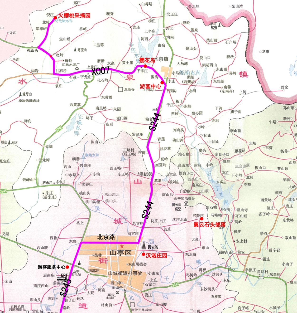 山亭自驾游一日游1号线:水泉休闲采摘一日游一号线:水泉休闲采摘一日游(2月-6月):中华樱园采摘(赏樱花)→吃农家饭→到水泉镇购山亭土特产。 游览:游樱花岛、绿道骑行、垂钓,到赵岭、倪庄、郑庄樱桃采摘; 餐饮:西河饭店 水泉镇下辛庄村 152666162106 秀芹炒鸡店 水泉镇下辛庄村 0632-8761390 鑫鑫饭店 水泉镇政府南 0632-8763829 梨园全羊馆 水泉镇政府南 0632-8761988 购物:三禾合农副产品有限公司 (水泉镇政府斜对面) 主要产品:山野杂粮、山核桃、板栗、山鸡蛋、地瓜枣(红薯片、条)、山野菜、大樱桃等系列农副产品。电话:13969480699 交通提示: